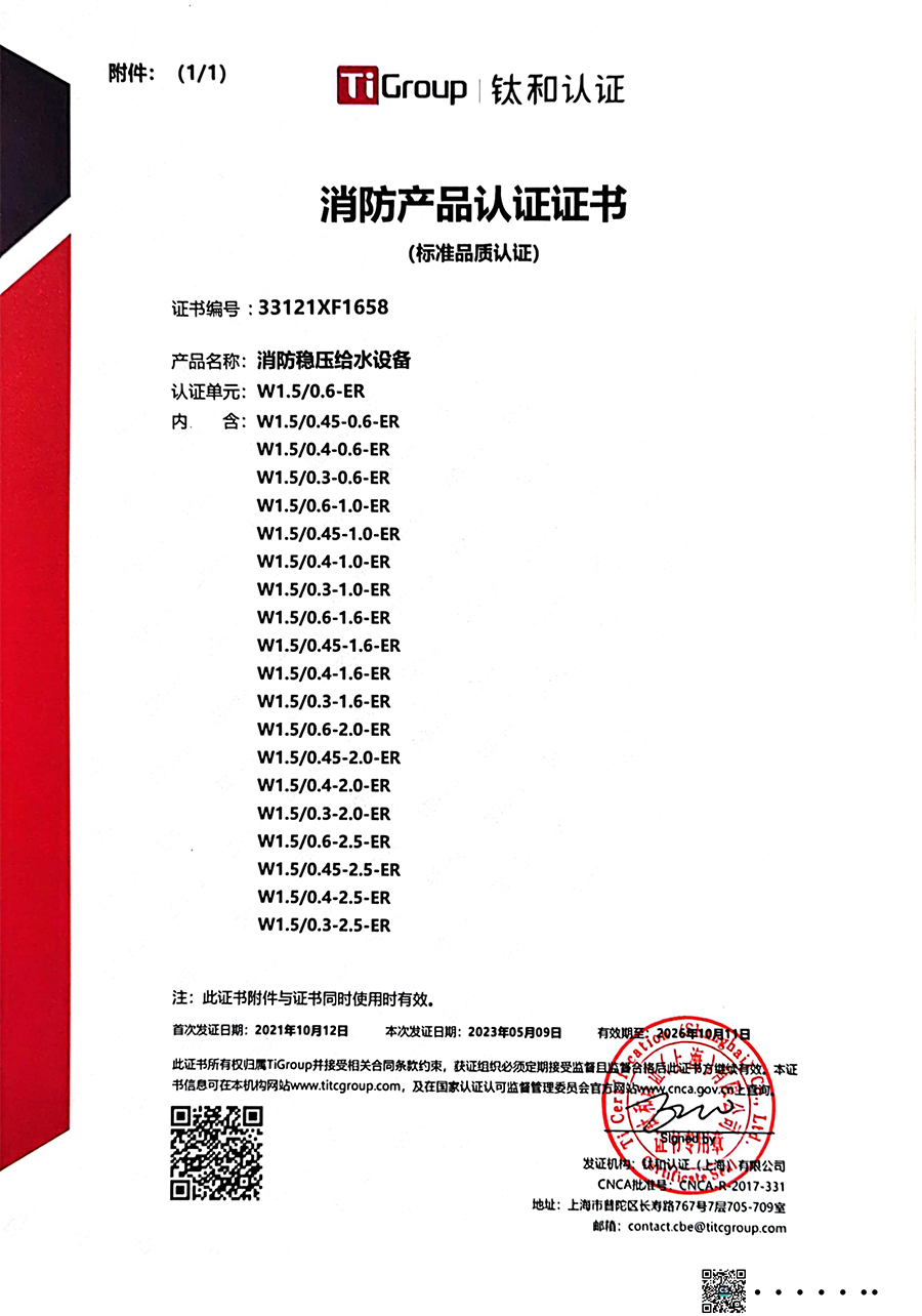 消防穩壓給水設備-消防產品認(rèn)證證書